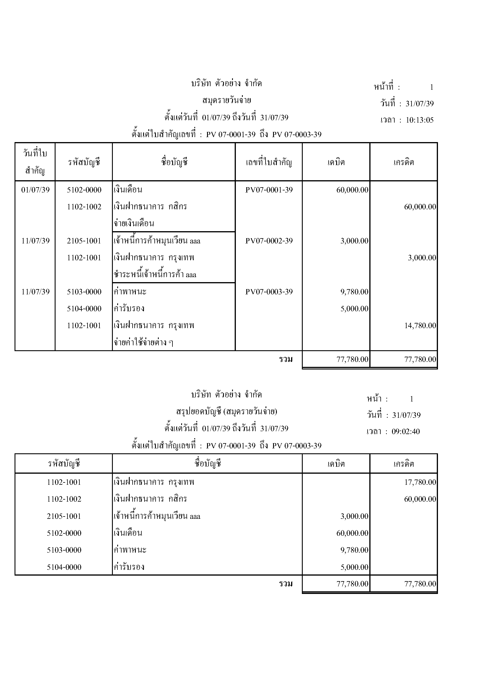 ♦ รายงานสมุดรายวัน และรายงานสรุปยอดบัญชี