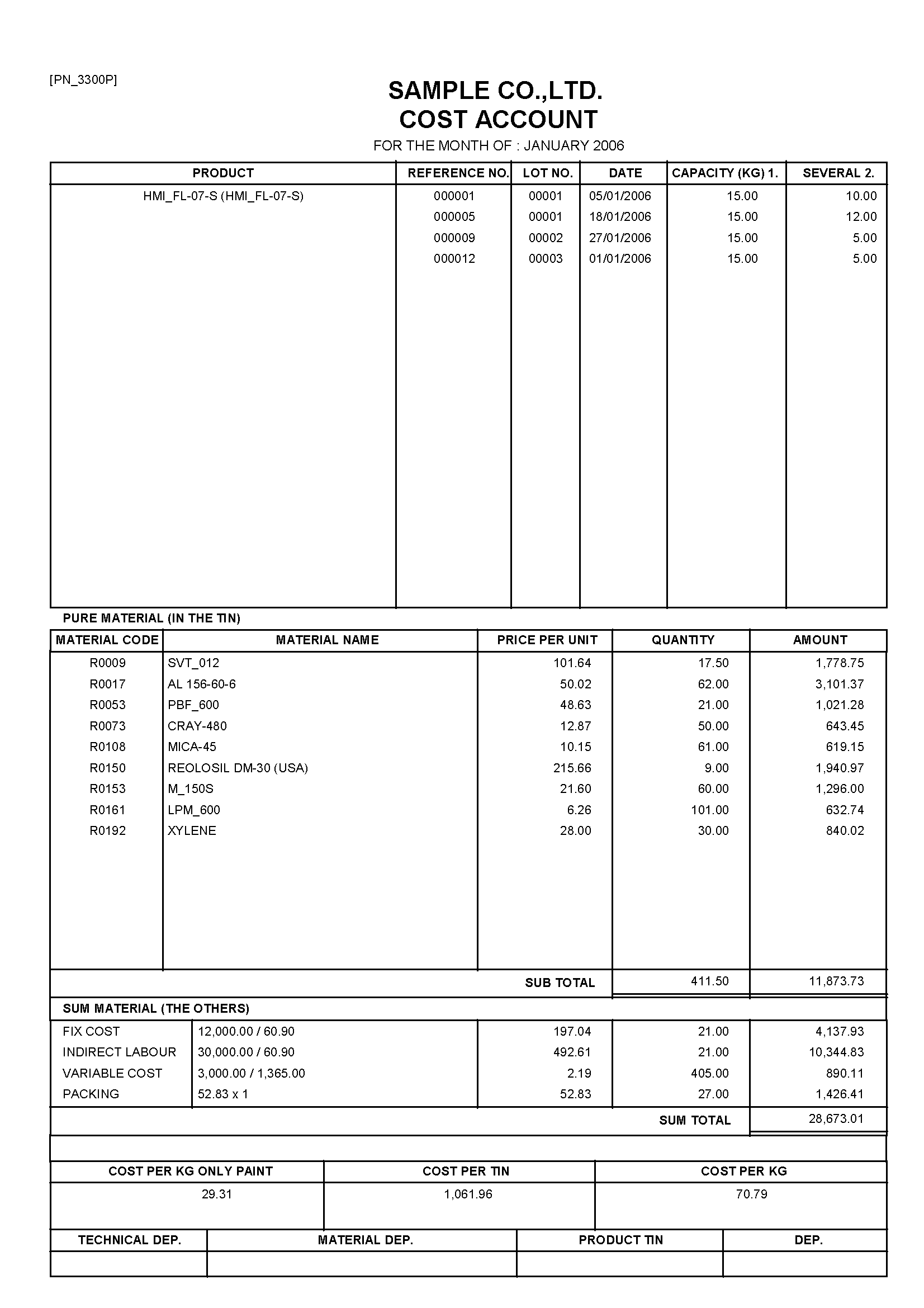 ในขั้นตอนนี้ User สามารถพิมพ์รายงานต้นทุนการผลิต (Production Cost) เพื่อให้ผู้บริหารดูต้นทุนการผลิตแต่ละใบสั่งผลิต(หรือแต่ละ Lot) ได้ทันที โดยโปรแกรมจะนำค่าใช้จ่ายทางตรง(Direct Cost) ซึ่งเป็นค่าวัตถุดิบและค่าแรงที่ใช้จริงรวมกับค่าประมาณการของค่าใช้จ่ายทางอ้อม(Estimated Indirect Cost ) ซึ่งเป็นค่าเฉลี่ยของเดือนก่อนหน้านี้ (หลังจากฝ่ายบัญชีปิดบัญชีตอนสิ้นเดือนแล้ว จะมีการคำนวณ Production Cost ให้ใหม่อีกครั้งหนึ่ง เพื่อตัวเลขจะได้ตรงกับฝ่ายบัญชี)